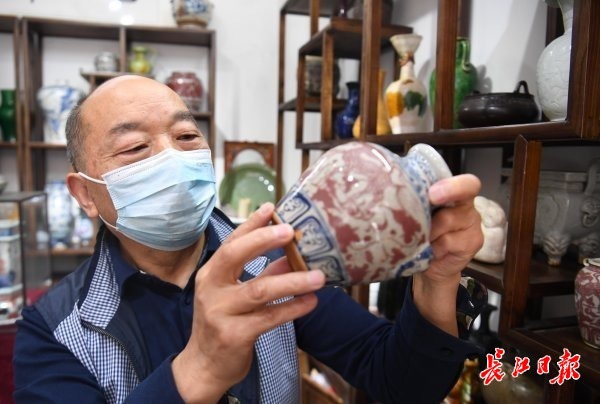 文博专家蔡华初先生在为市民进行瓷器鉴赏。