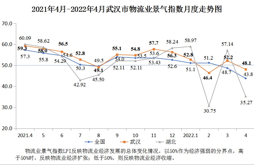 长江日报大武汉客户端5月18日讯(记者陈永权)5月17日,我市发布物流业景气指数显示,4月份,武汉市物流业景气指数为48.1%,较上月回落4.0个百分点,高于全国同期4.3个百分点。