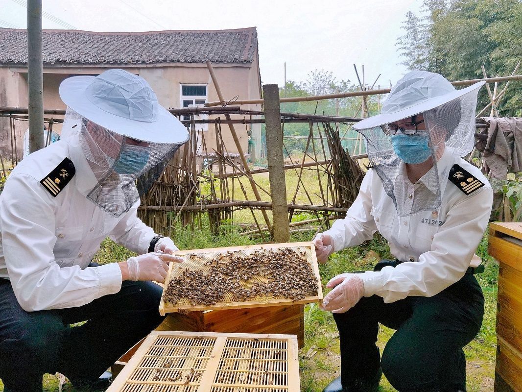 武汉海关关员在蜂蜜生产企业出口备案养殖基地调研。通讯员朱晓静 摄