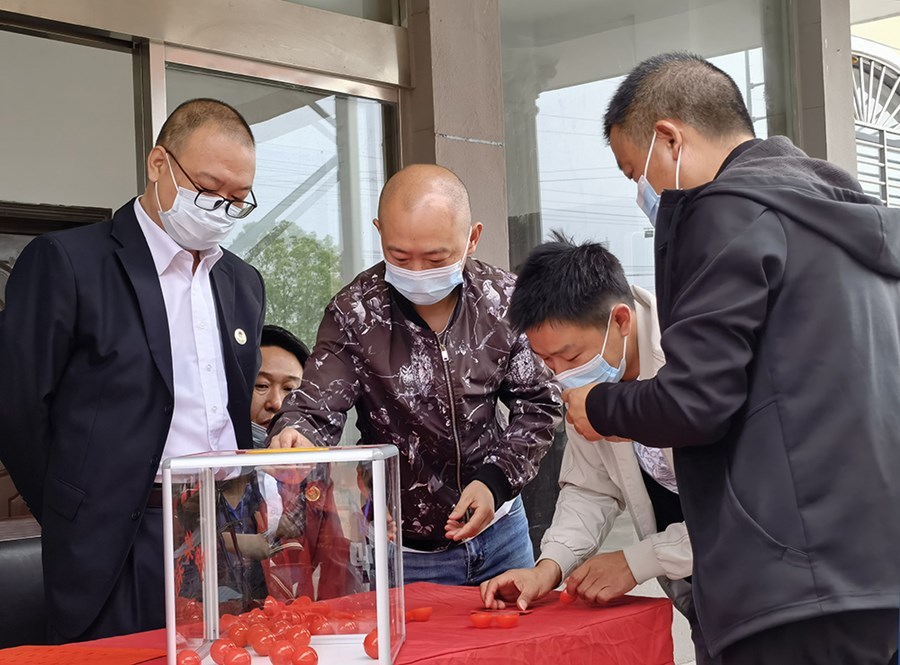 9时许,在公证处工作人员全程监督下,征迁户代表按照抽取的顺序号对号入座,按顺序在抽签箱中抽取安置房屋编号,现场抽号、当面唱号、现场确认、现场公示。