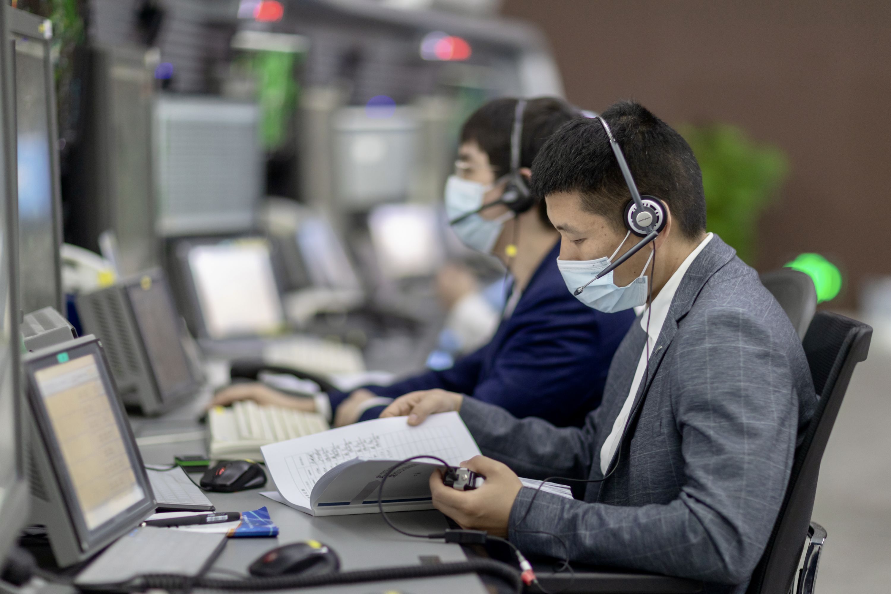 5月19日京广大通道空域调整进行时,管制员值守待命。