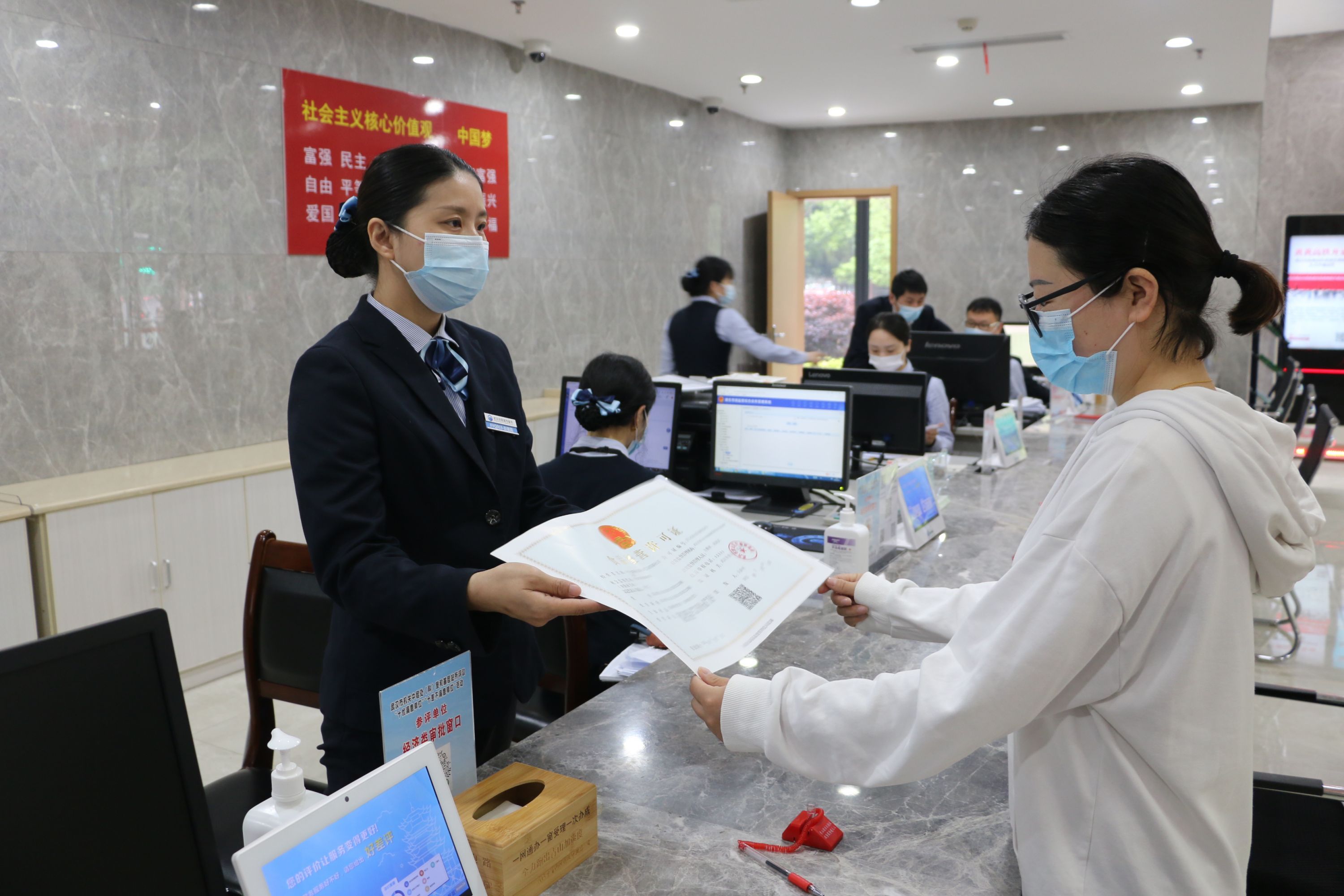分店办理人(右)现场领证。 通讯员朱晶晶 摄