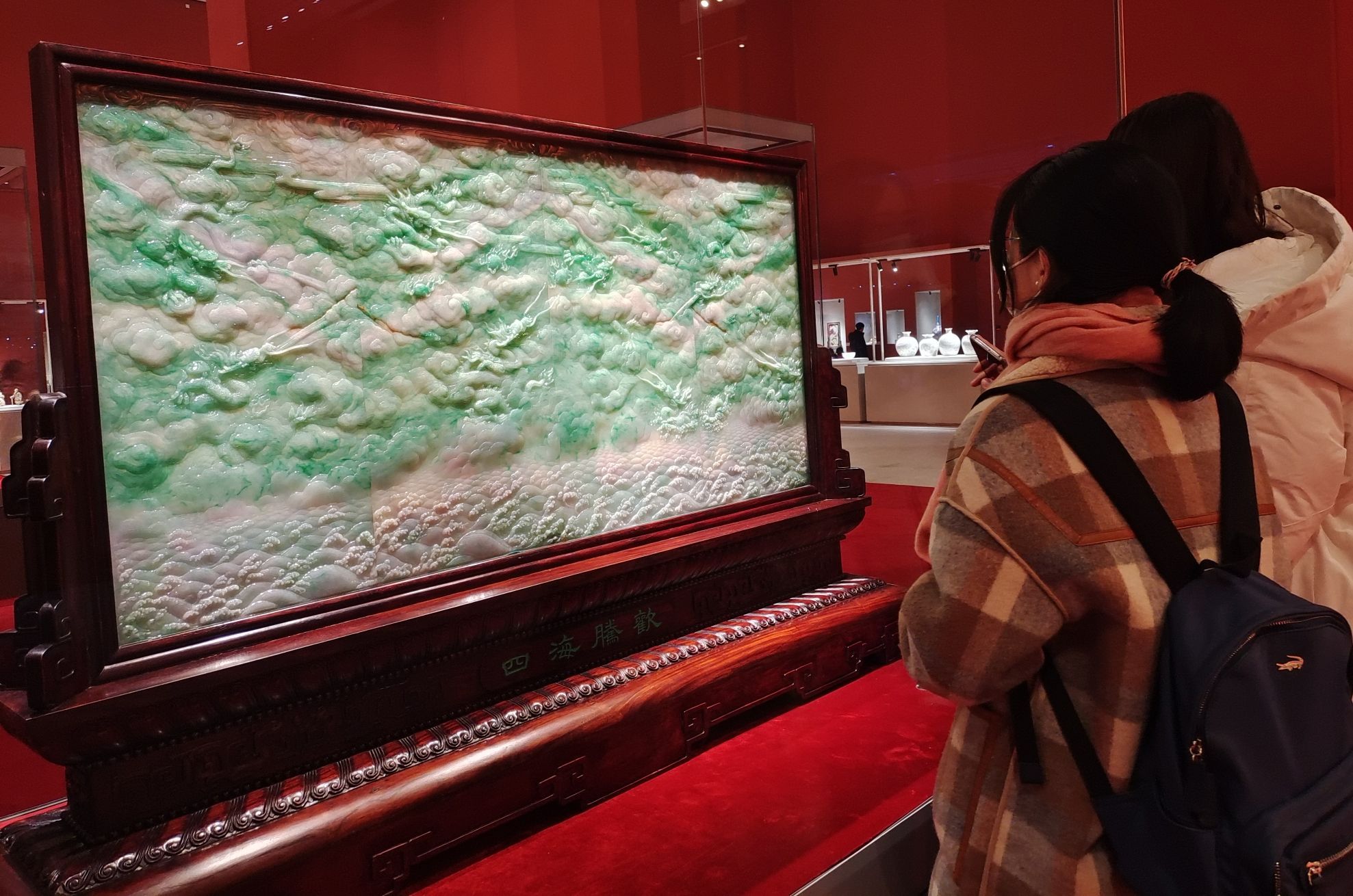 第一件是翡翠插屏“四海腾欢”。记者柯立 摄