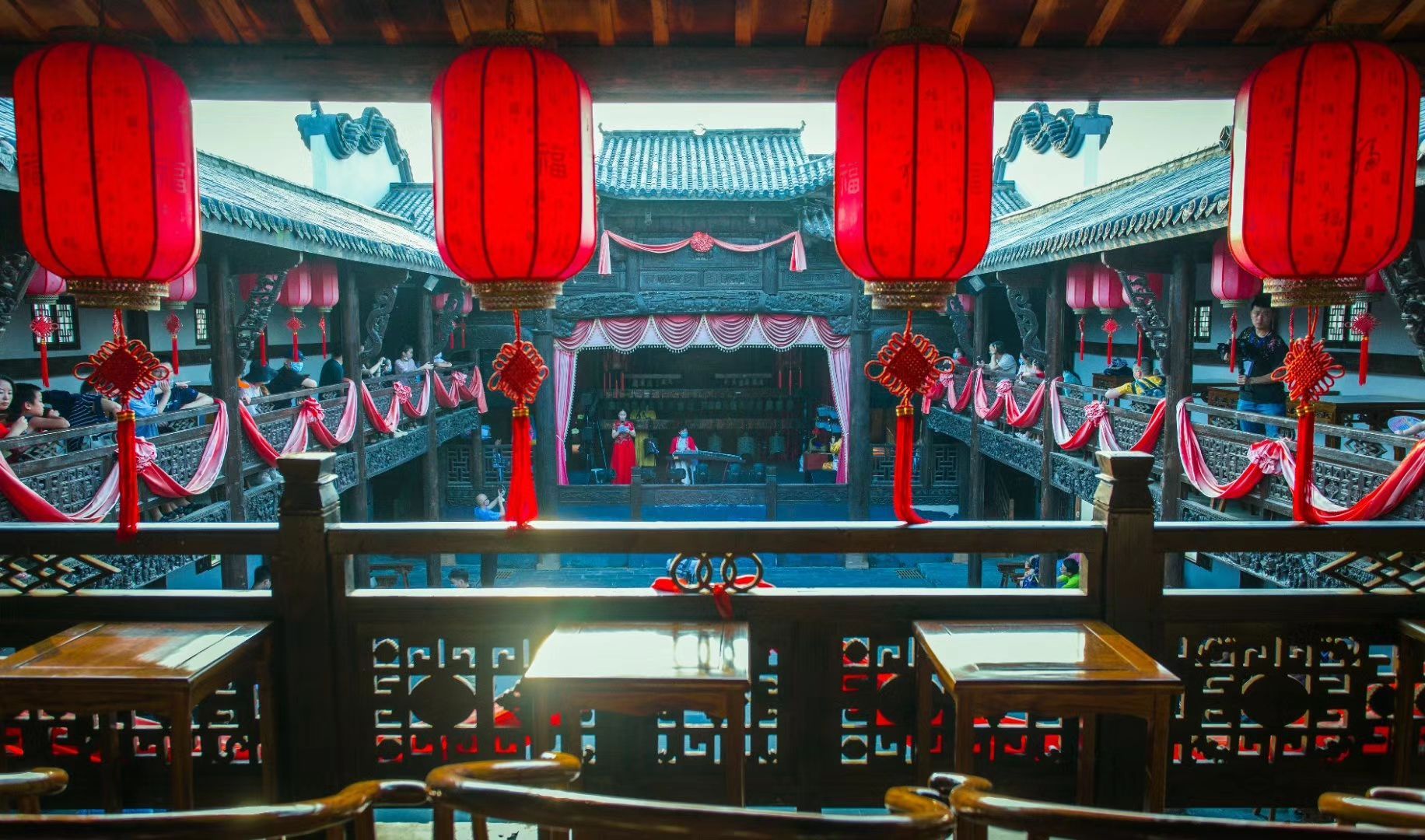 花博汇景区拥有200多年历史的古戏台是传统文化的乐园。每逢节假日,非遗国粹剧场非物质文化遗产皮影戏、湖北大鼓、黄梅戏等轮番上演,为来客献上一场文化盛宴。