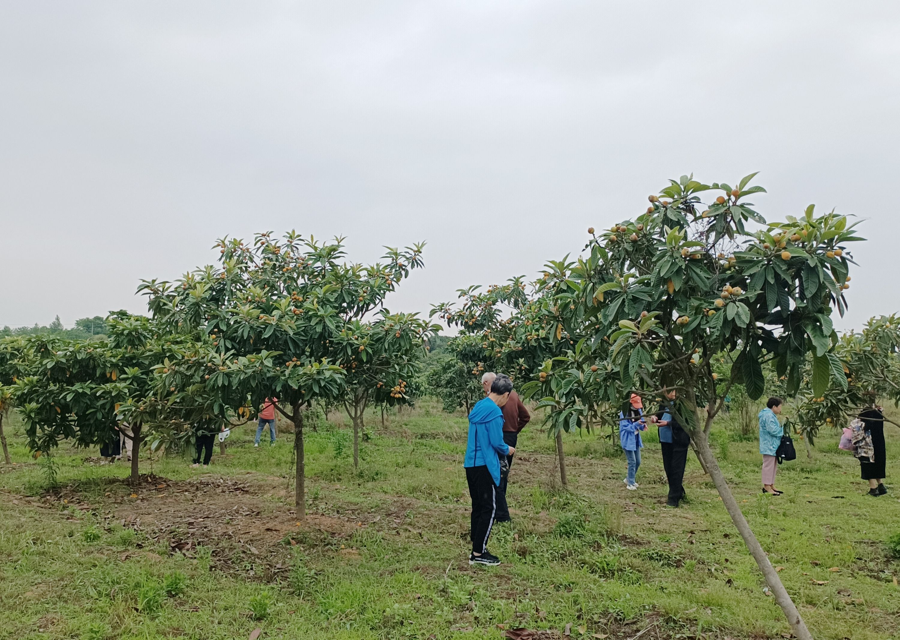 游客在花朝河湾采摘枇杷。