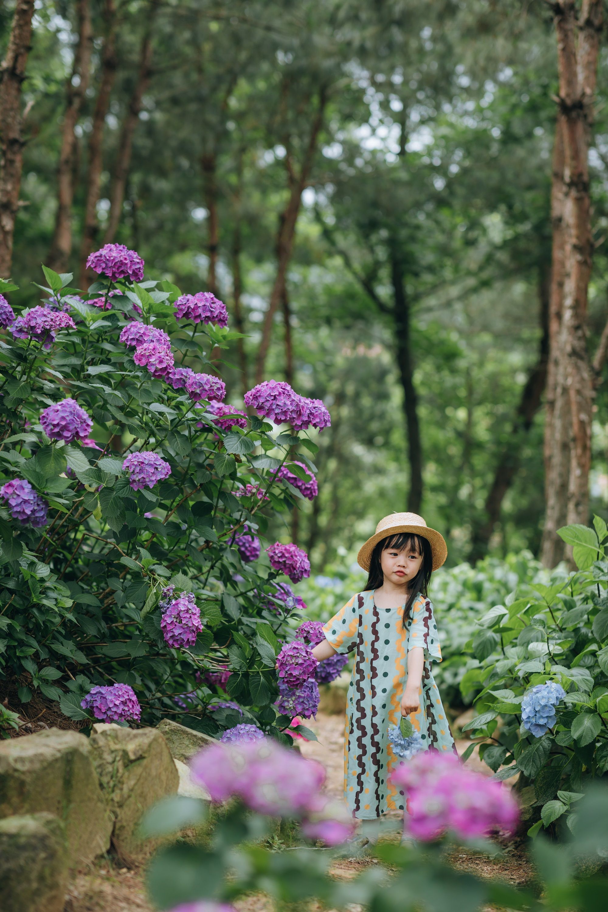 夏日花季,玫瑰、月季、格桑花、马鞭草、蔷薇等赶着趟开。花博汇景区的林下花海和绣球园中,20余个品种的绣球花已进入盛花期,一团团绣球花淡蓝、浅紫、淡粉,绵延了一整座小山,仿佛步入爱丽丝仙境的童话王国。