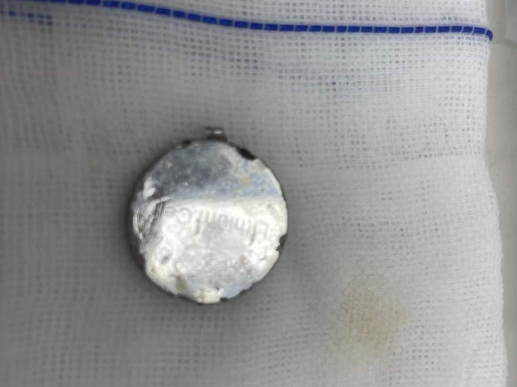 幸运的是,凭借丰富的经验,医生在半小时手术时间里多次尝试,终于顺利从萱萱食管里取出异物,是一颗直径约1.5厘米的纽扣电池。孩子的食管已经出现溃疡。孩子随后在病房加强监护,确认康复后,于5月19日平安出院。不过,此后一段时间,萱萱还无法自己吃饭,只能通过鼻饲管来进食。