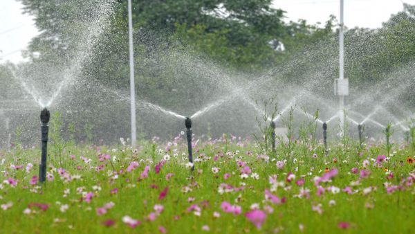长江日报大武汉客户端5月19日讯 18日上午,湖北水利水电职业技术学院汤逊湖校区内的花田里,节水喷灌系统的143个喷头正在用收集到的雨水对花田浇灌。2021年,湖北水利水电职业技术学院引入合同节水管理服务,由专业服务企业按照“效果保障型”模式,为学院提供为期三年的专业合同节水管理服务。