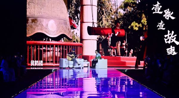 开幕式现场,民谣歌手冯翔与本土剧团“果然戏剧”创始人张一天带来节目《一城一故事》,用汉话和武汉民谣讲述武汉服装故事。