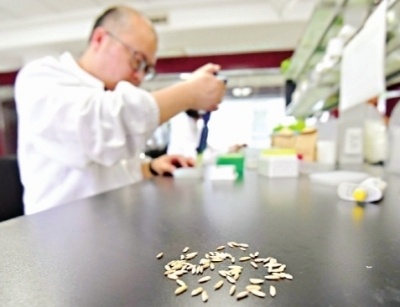 工作人员正在提取种子DNA。长江日报记者刘斌 摄