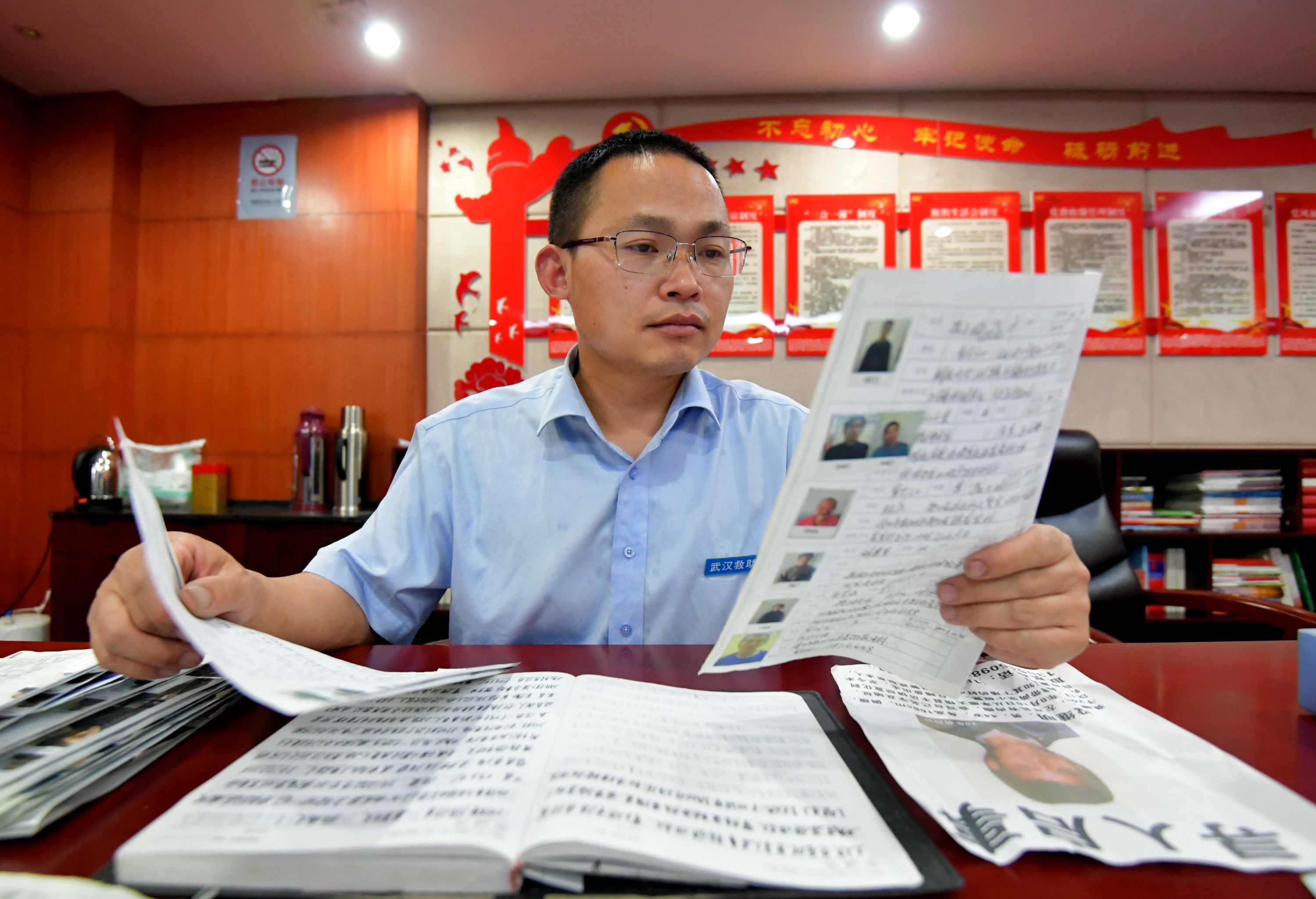 李升在自己整理的“疑难杂症”登记本里,仔细比对新搜集来的寻人信息。长江日报记者刘斌 摄