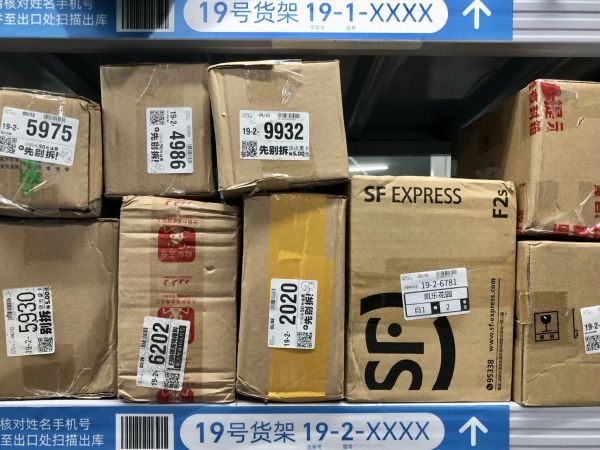 为方便送货上门,武汉菜鸟驿站包裹标签上已标注门栋和单元。记者张珺 摄