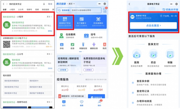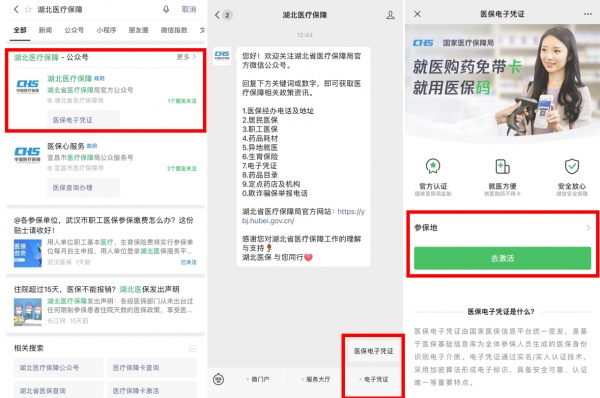 方法一:微信搜索“湖北医疗保障”公众号并关注,点击“电子凭证”—“医保电子凭证”,根据提示完成激活。