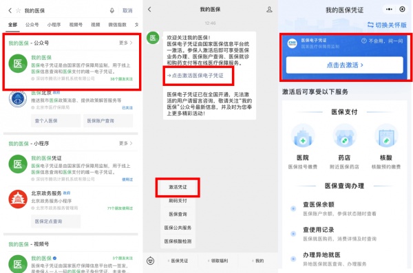 方法三:通过“我的医保”微信公众号,点击“医保凭证”—“激活凭证”,根据提示轻松激活。