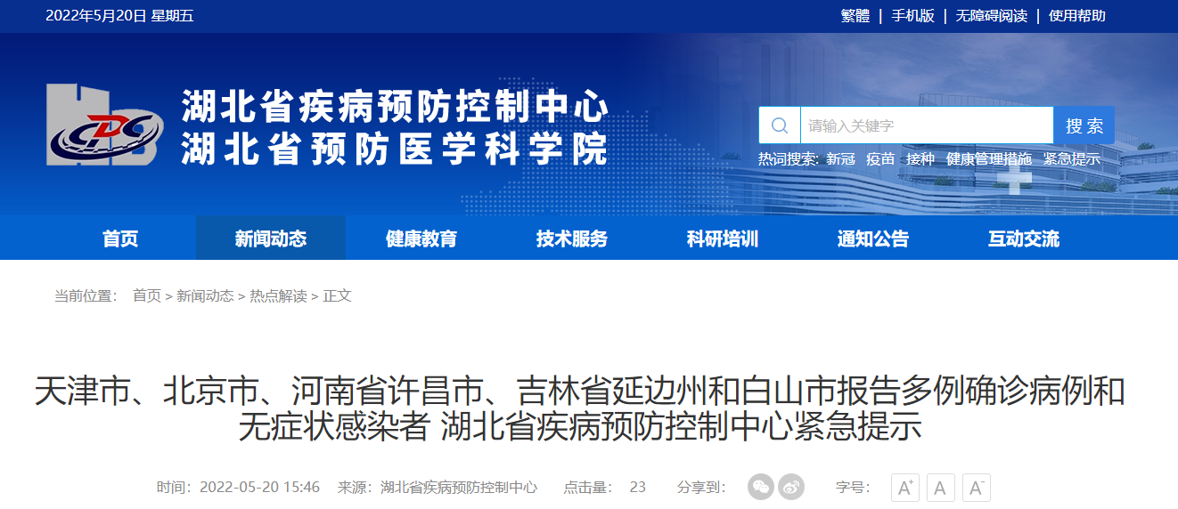 一、2022年5月9日(含)以来有吉林省白山市长白县;5月12日(含)以来有天津市河北区新开河街道和吉林省延边州延吉市;5月13日(含)以来有北京市西城区什刹海街道和海淀区青龙桥街道、河南省许昌市长葛市旅居史的来鄂返鄂人员在做好个人防护的情况下,请主动向当地社区进行健康申报,并配合当地疫情防控指挥部的所有防控措施。如有疑问或转码有误可拨打我省各级疾控中心咨询热线(号码附后)。