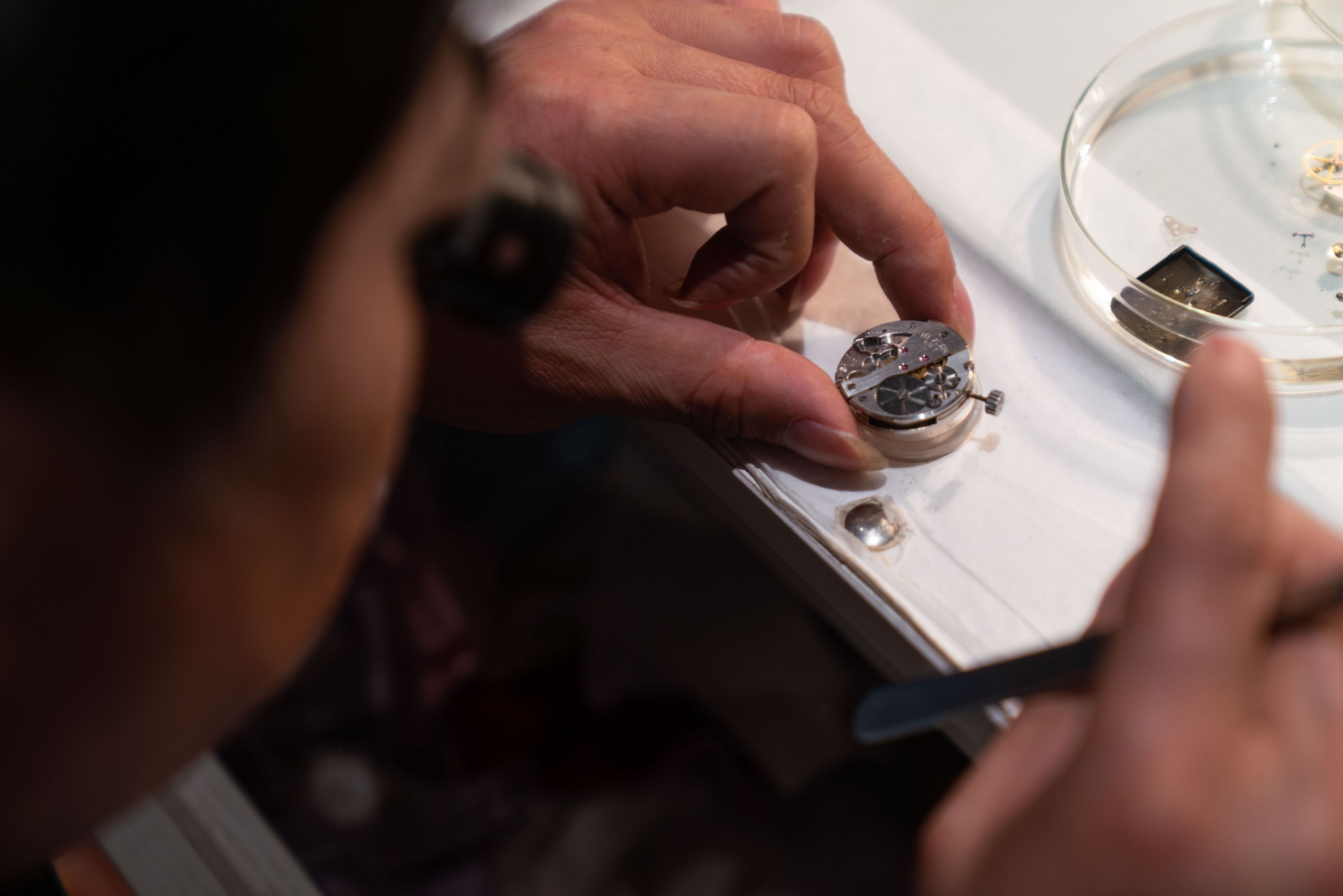 武汉亨达利高级技师唐武平正在修复手表。长江日报记者胡九思 摄