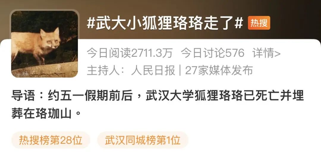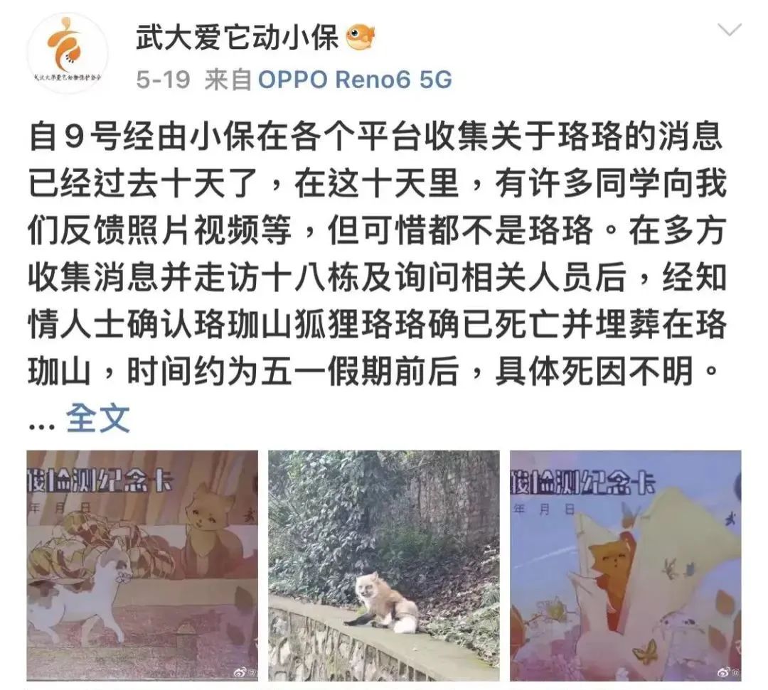 确认武大小狐狸珞珞已经死亡