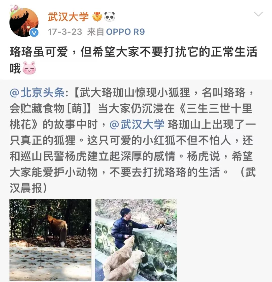 此后,“萌化”全网的珞珞成为了武汉大学的一张名片