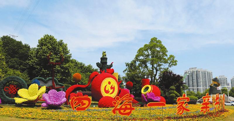 5月26日,壬寅年世界华人炎帝故里寻根节将如期在我市举办。从5月中旬开始,市城管执法委组织白云公园等所属单位,在随州城区府河大桥、迎宾大道等主要道路节点,悬挂大红灯笼和中国结,摆放10万余盆鲜花,以“四海一家亲,共圆中国梦”“寻根谒祖”等为主题布景造型,积极营造喜庆祥和的节日氛围。(随州日报通讯员聂少峰摄)