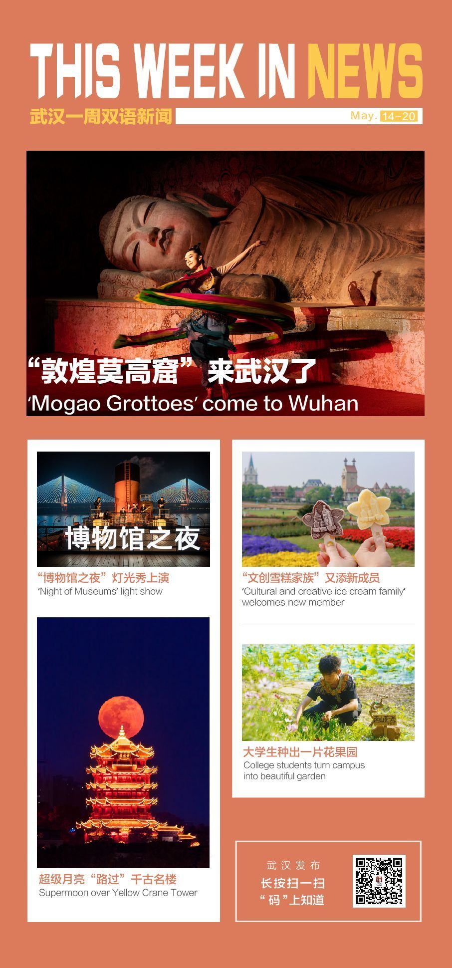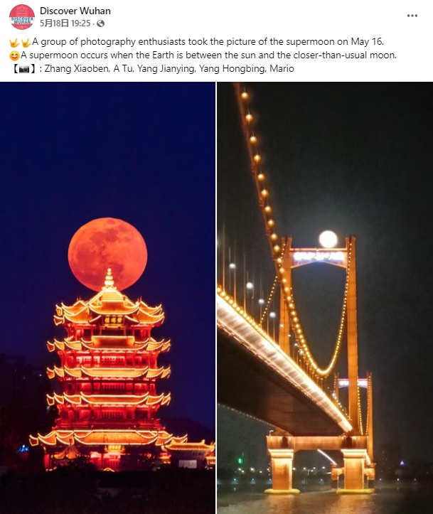 On May 16, the 16th day of the fifth month on the Gregorian calendar and the 16th day of the fourth month on the lunar calendar, a supermoon rose and hung over Wuhan. It perfectly interprets the saying "The moon turns perfectly round on the 16th rather than the 15th day of the lunar month."