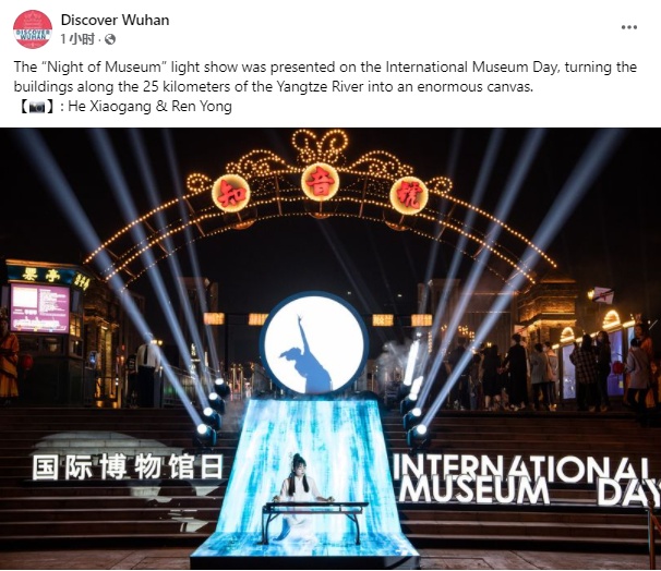 "Night of Museums" light show was presented on the evening of May 18, turning the buildings along the 25 kilometers of the Yangtze River into an enormous canvas, on which exquisite cultural relics from the collections of museums were displayed via digital and AR technologies.