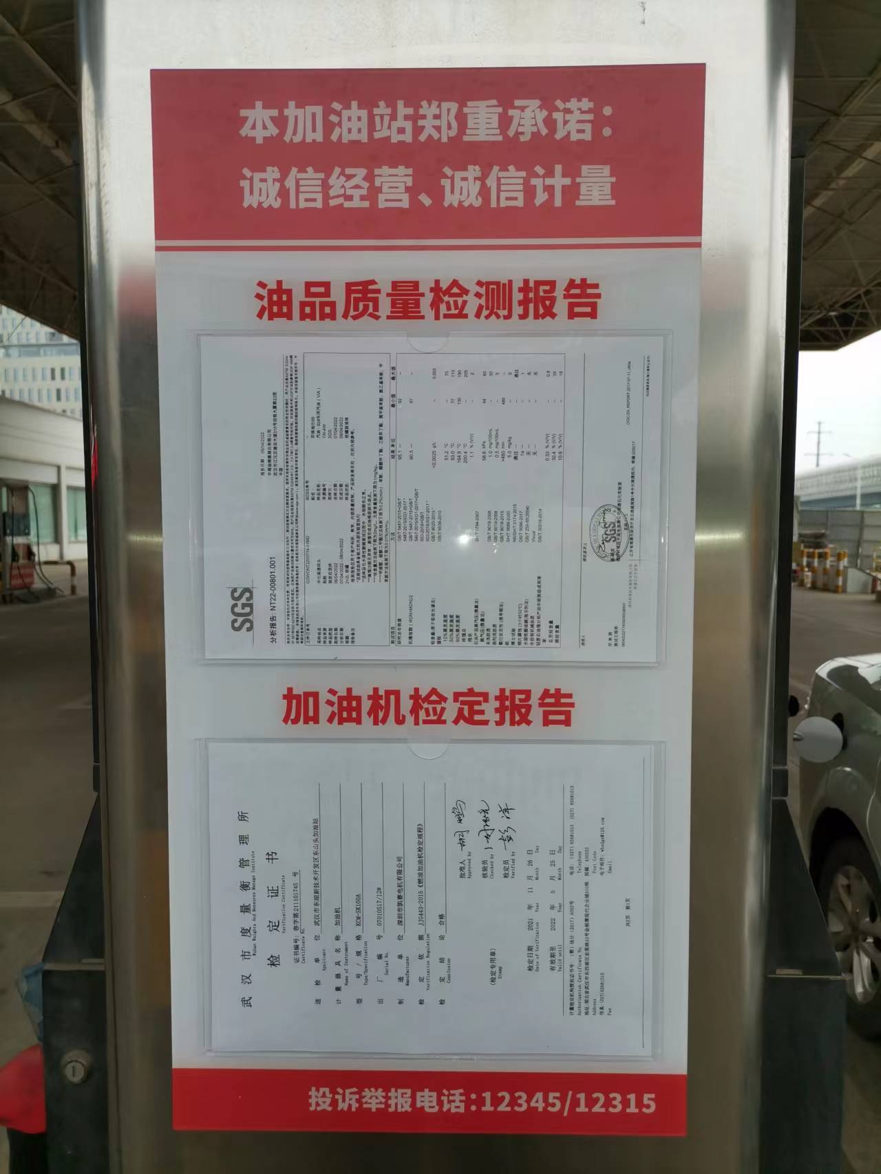长江日报大武汉客户端5月21日讯 将油品质量检测报告、加油机检定证书、加油站诚信计量承诺张贴在每台加油机上,车主前来加油一看就“心里很踏实”,5月20日是世界计量日,东湖高新区全区22个加油站100多台加油机上“亮质、亮量、亮诚信”之举,为全市乃至全省首创。