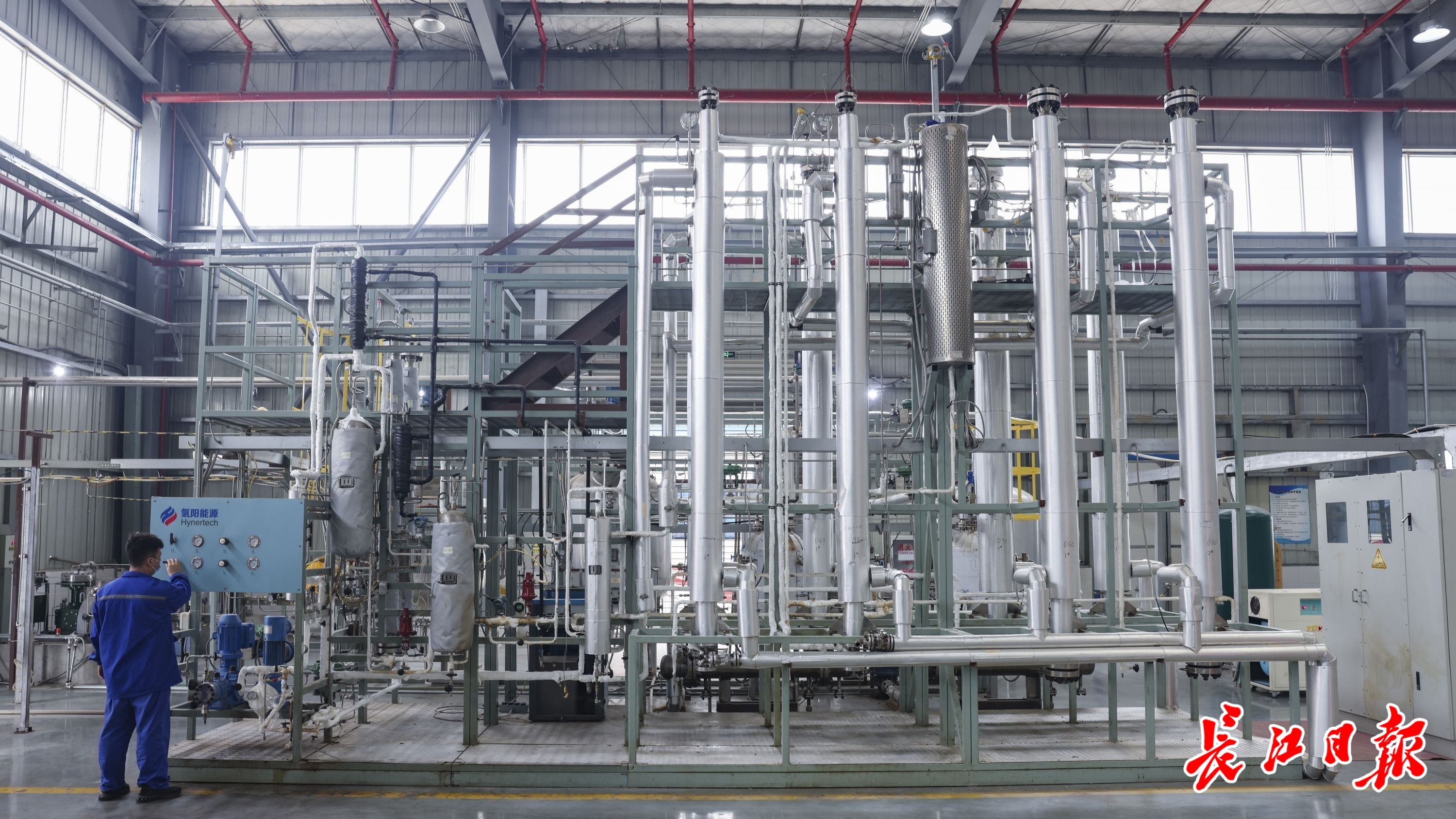 工作人员检查储氢设备的运行,生产出来的氢气,在该设备中转化成氢油,便于储存和运输。记者胡冬冬 摄