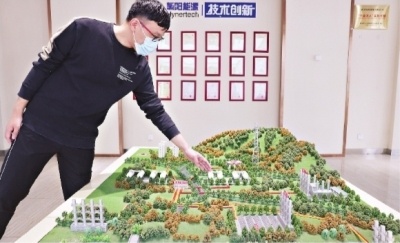 20日,武汉氢阳能源工作人员通过沙盘模拟,介绍制氢、储氢、运氢、用氢以及储油的回收再利用的一整套系统。