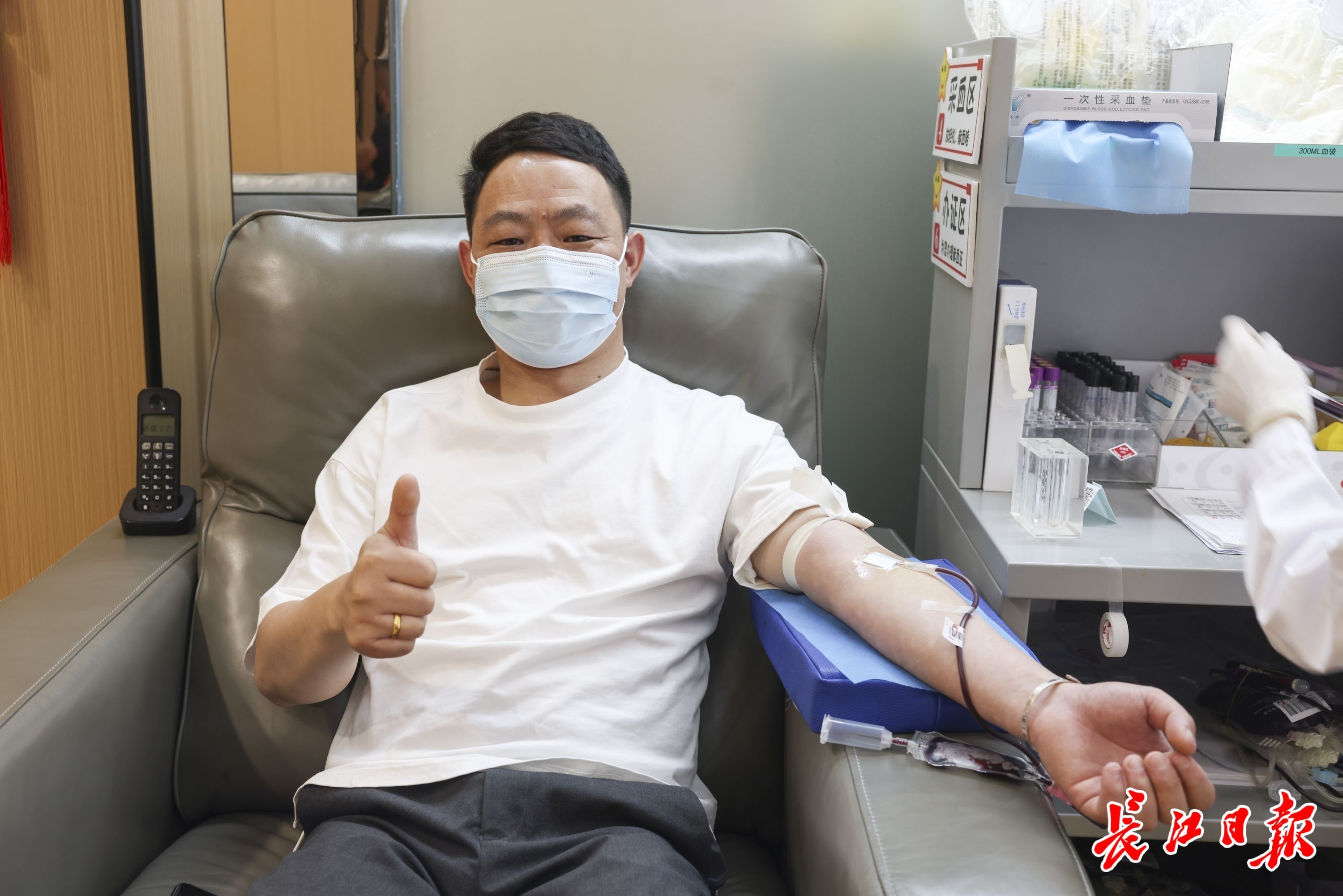 5月17日上午9时,正在工作的车工牛福强接到武汉血液中心电话:“牛师傅,您在不在武汉?现在身体怎么样?有一位A型Rh阴性血的患者需要手术备血,您今天可不可以来献一下?”