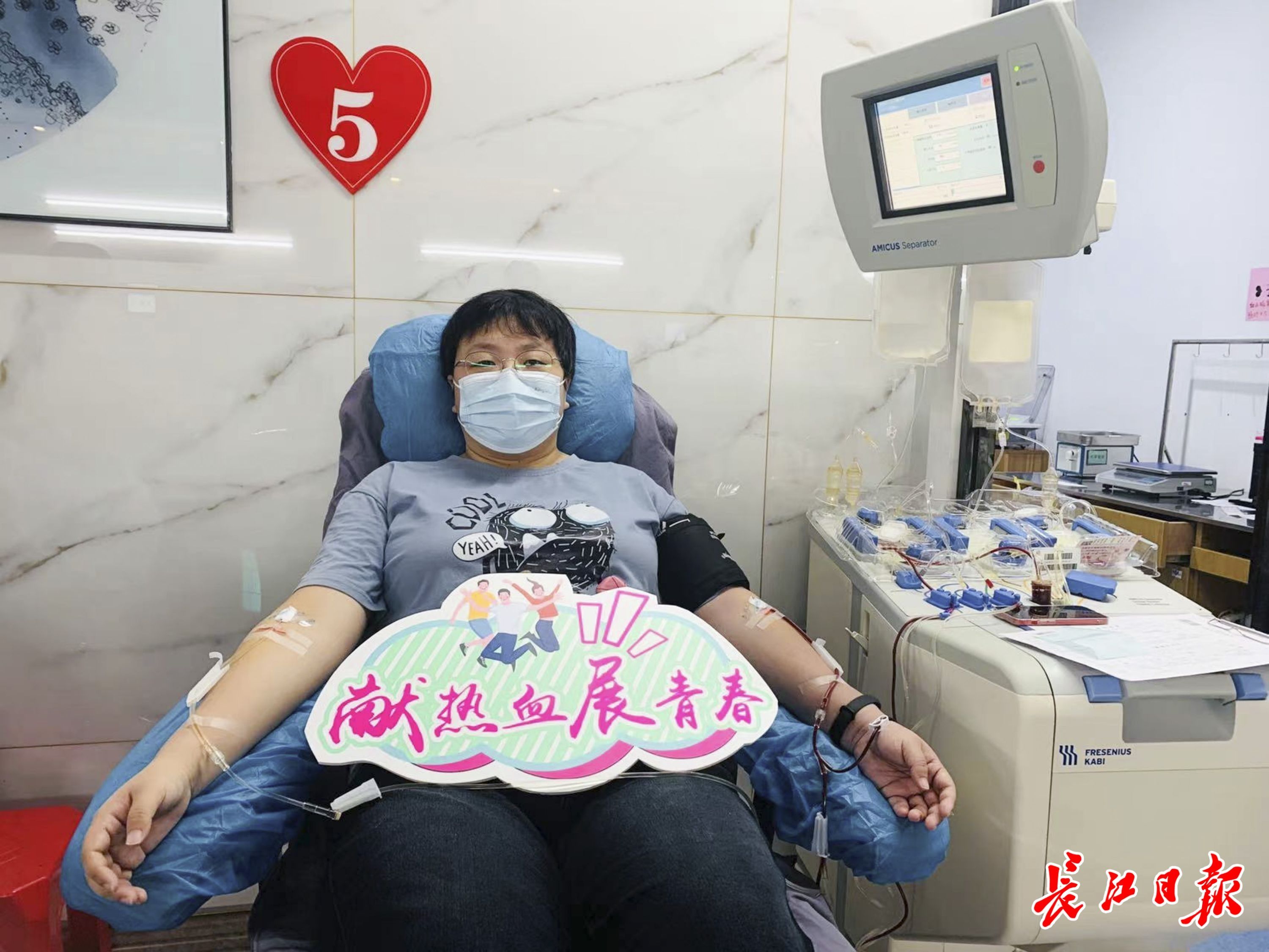 苗敦元,2017年深圳第一次献血,得知自己是Rh阴性血型,2020年6月回到武汉开始定期献血。记者胡冬冬 摄