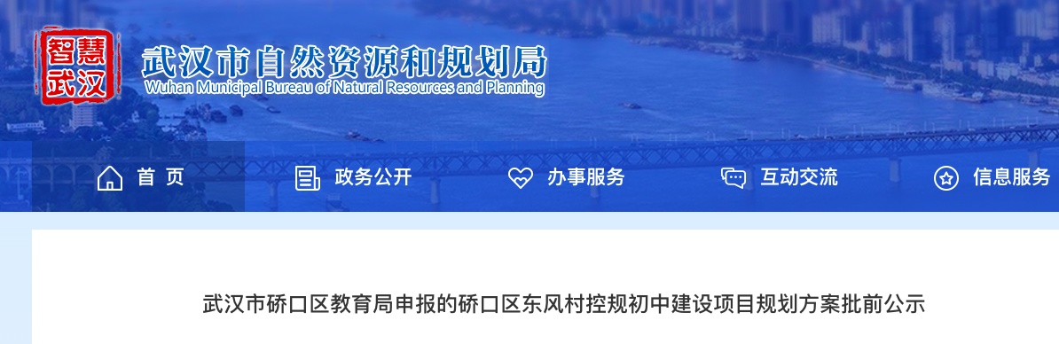 硚口区将新建的这所初中有最新进展了!近日,武汉市自然资源和规划局网站对硚口区东风村控规初中建设项目规划方案进行批前公示。