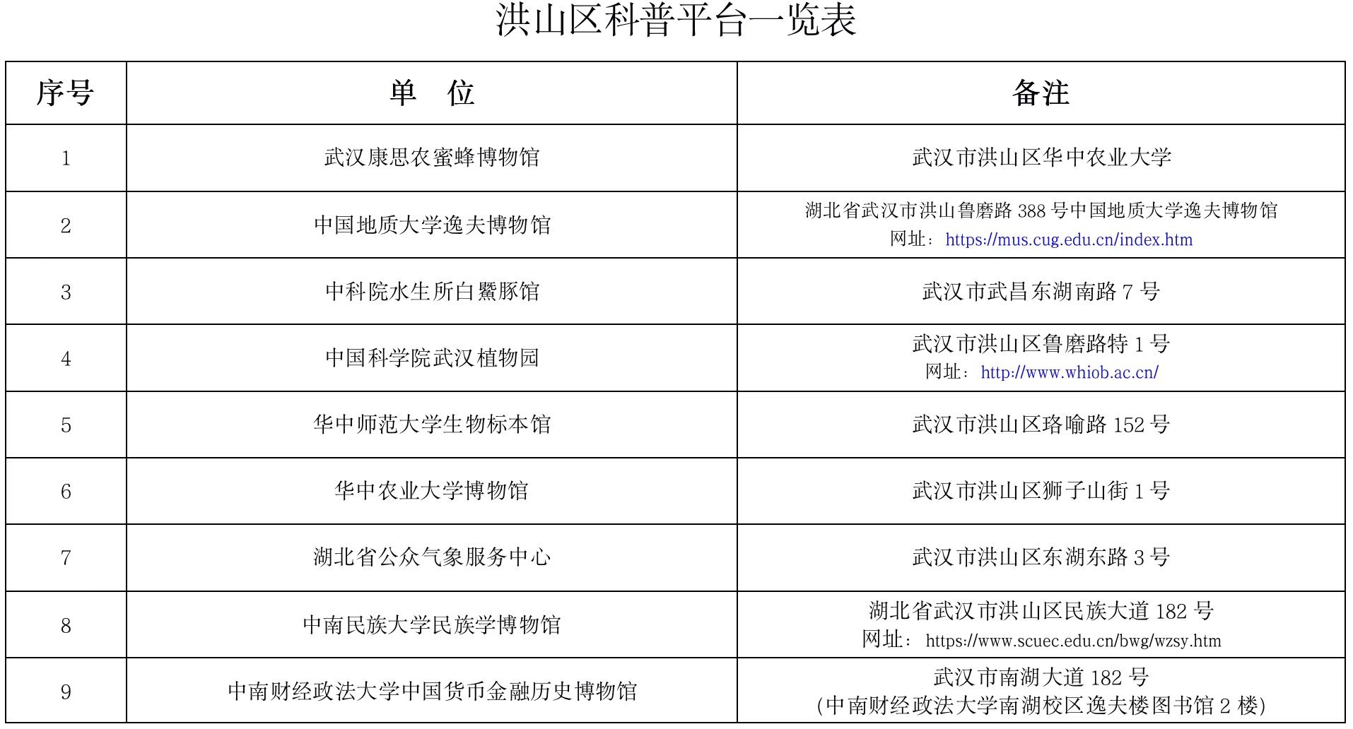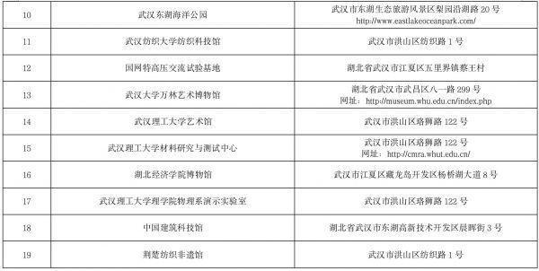 19大在汉高校、机构单位的科普平台、网站链接