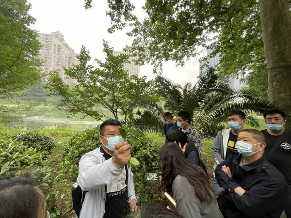 董立坤教大家辨识各种植物的病虫害。通讯员兰玉婷 摄