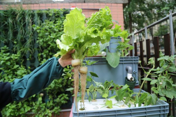 “这些鱼所产生的粪水,通过特殊的管道和水流设计,收集到一个微生物发酵罐里进行分解,然后通过管道输送到墙上的立体种植箱和地面的梯级种植箱,作为有机肥,供给蔬菜生长。种植箱下方的管道,再将余水收集起来送回鱼池。”刘女士介绍。去年6月,建起了这个家庭式的“生态系统”。