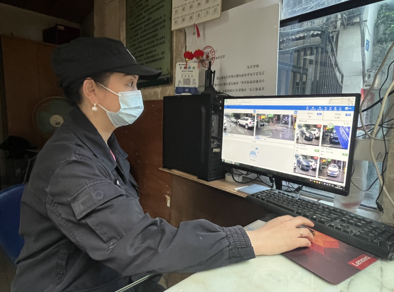 当晚7时30分,记者看到物业工作人员袁雯丽正沿着小区内的主干道巡逻。“除了日常的巡逻,当电脑上显示的剩余车位数量少于10个、车位接近饱和时,我还会专门去巡逻,看看车主是否规范停车。”