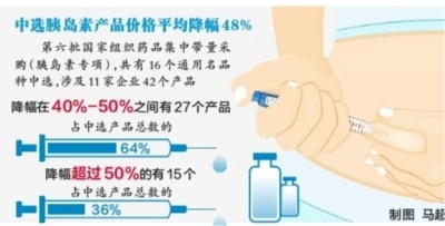去年底,第六批国家组织药品集中带量采购(胰岛素专项)开标。结果显示,共有16个通用名品种中选,涉及11家企业42个产品,涵盖临床常用的二代和三代胰岛素。中选产品既包括医疗机构常用的知名企业产品,也包括新兴企业产品。