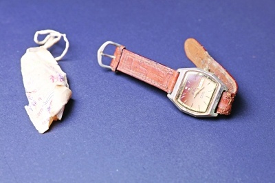 手表上绑着的收据存根已经发黄、字迹模糊,但它们依然被小心翼翼地保管着。
