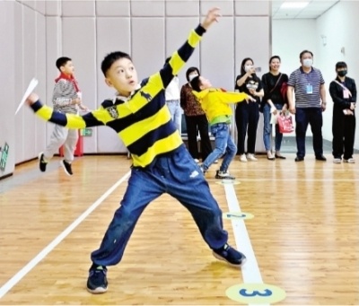 “投这款纸飞机的动作和打羽毛球很像,但投掷时要注意出手角度,斜向上45度效果比较好。”王亦恒喜欢运动,从3年前开始练习折纸飞机和打羽毛球,经常和爸爸妈妈一起到公园玩纸飞机。