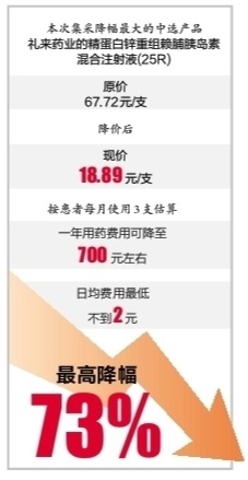 以每支胰岛素注射液3毫升规格计算,中选产品价格均降到每支80元以下,部分中选产品每支降至20元以下,价格最低的仅需17.89元/支。