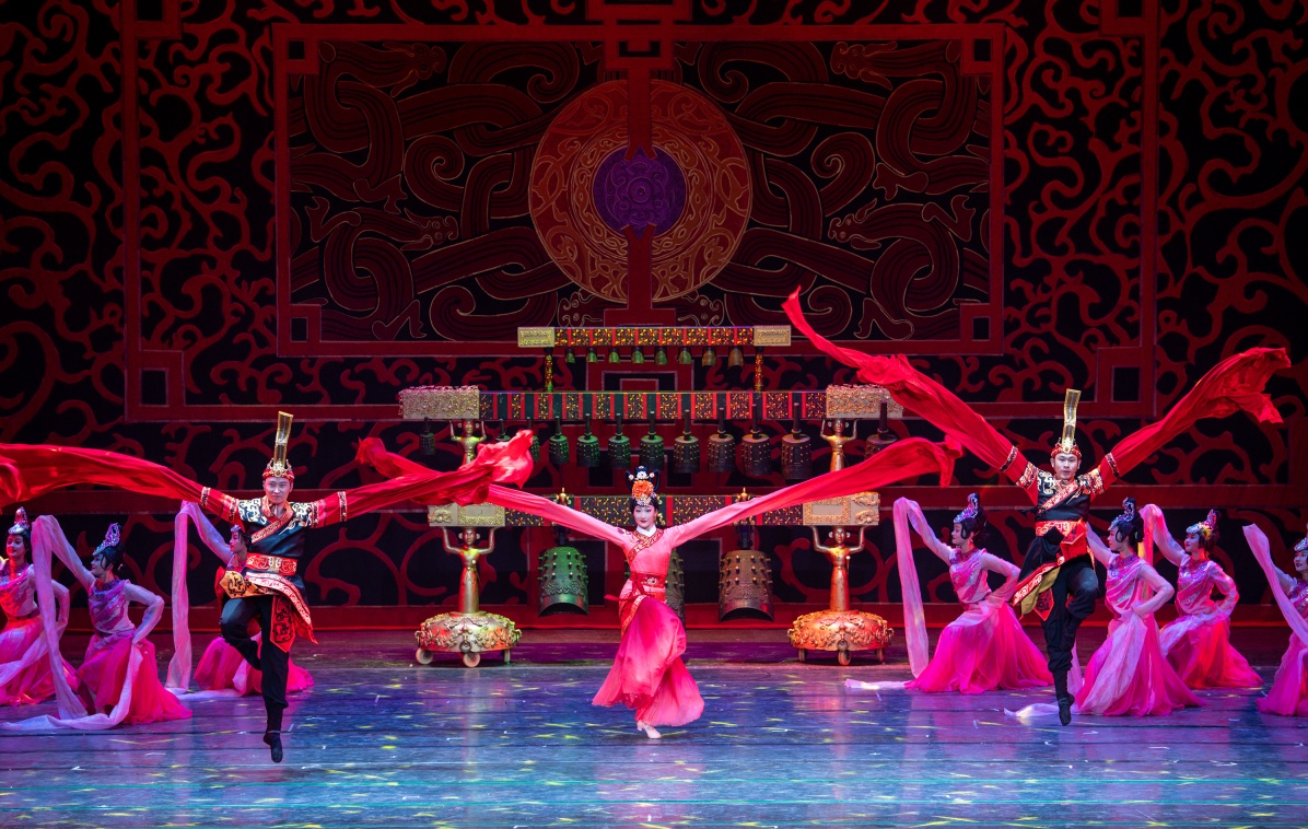 《编钟乐舞》和歌剧《洪湖赤卫队》是湖北省歌舞剧院的两部代表性作品。其中《编钟乐舞》分为“千古绝响”“乐舞阡陌”“八音合鸣”“楚韵千秋”等四个篇章,以歌、乐、舞结合的艺术形式,将曾侯乙墓葬出土的编钟、编磬、建鼓等数十种古乐器仿制品同台演奏,不仅呈现了“金、石、丝、竹、匏、土、革、木”八音合鸣的场景,也展示了古代楚国的文化艺术、风俗民情、祭祀、农事、征战及宫廷宴乐等情景。