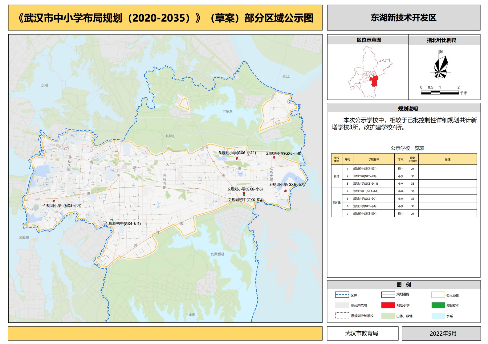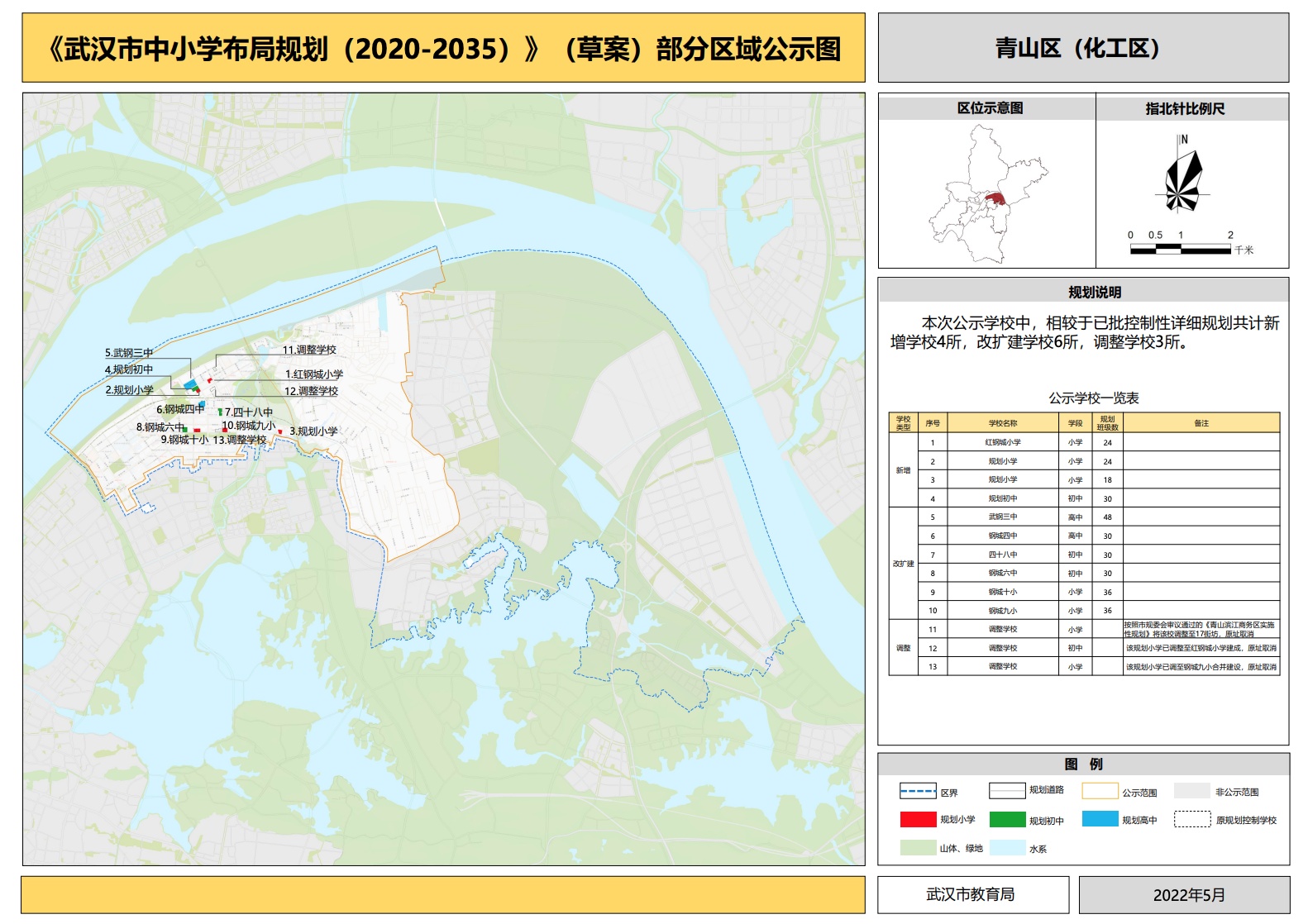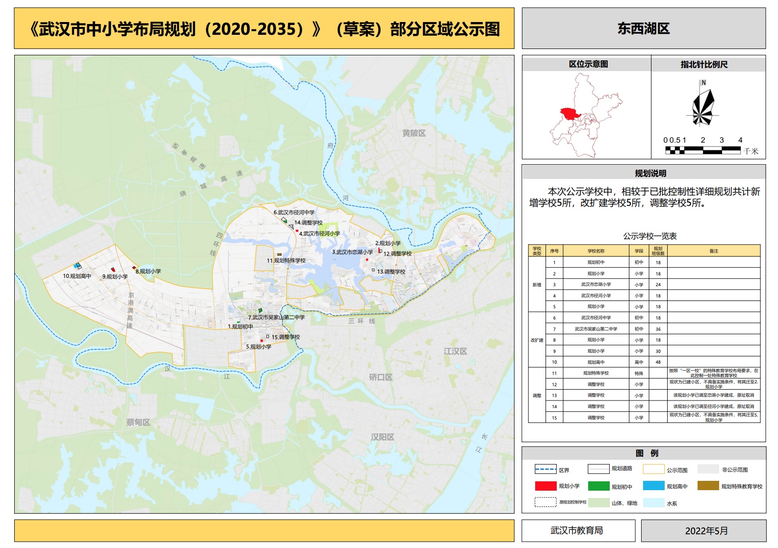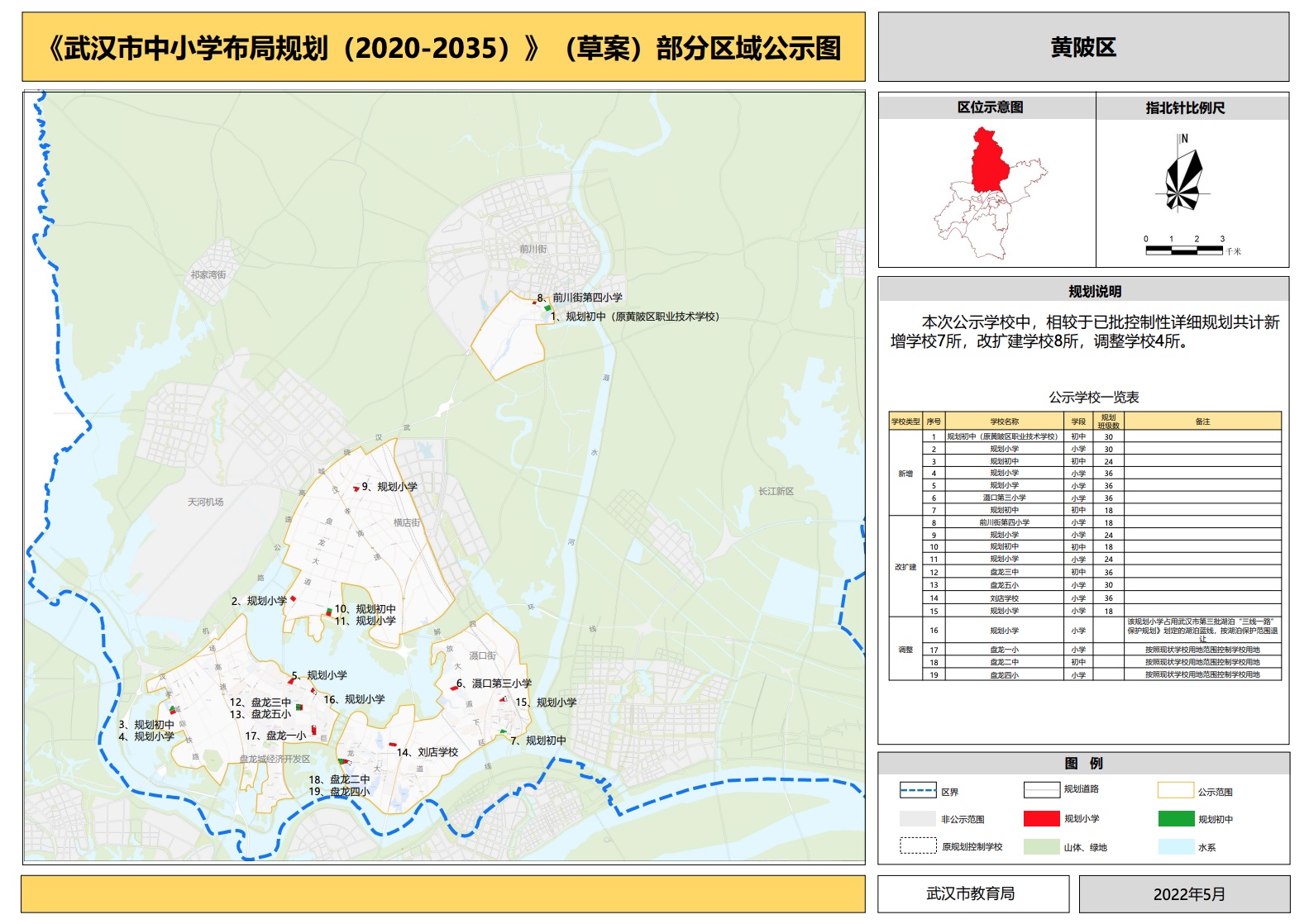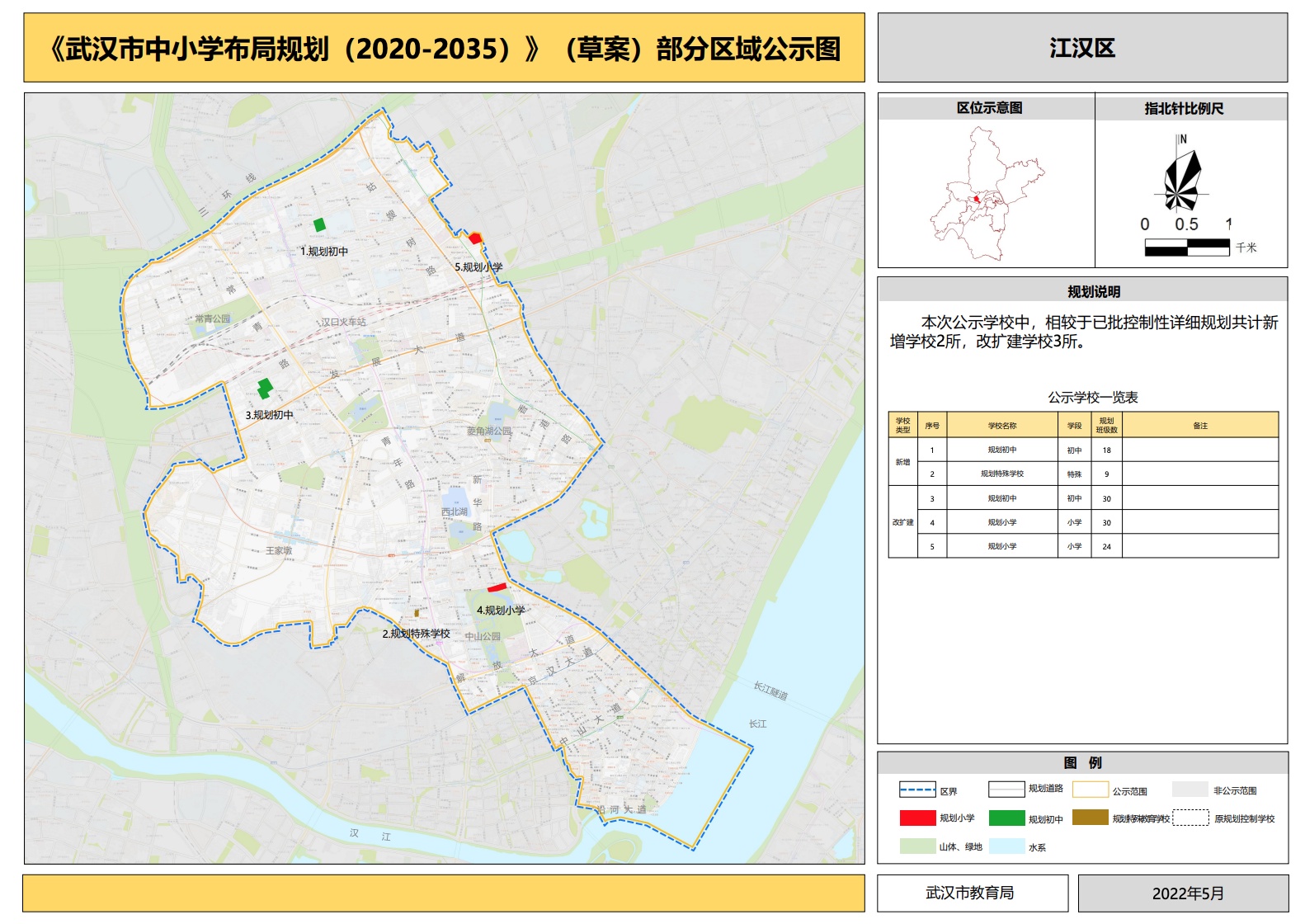《武汉市中小学布局规划(2020—2035年)》(草案)结合了《武汉市国土空间总体规划(2021—2035年)》(草案)的相关要求,在原编制《武汉市普通中小学布局规划(2013—2020年)》基础上组织编制而成。本次批前公示范围为《武汉市中小学布局规划(2020—2035)》(草案)部分区域,其他区域由于相关规划正在调整,不纳入本次公示范围。