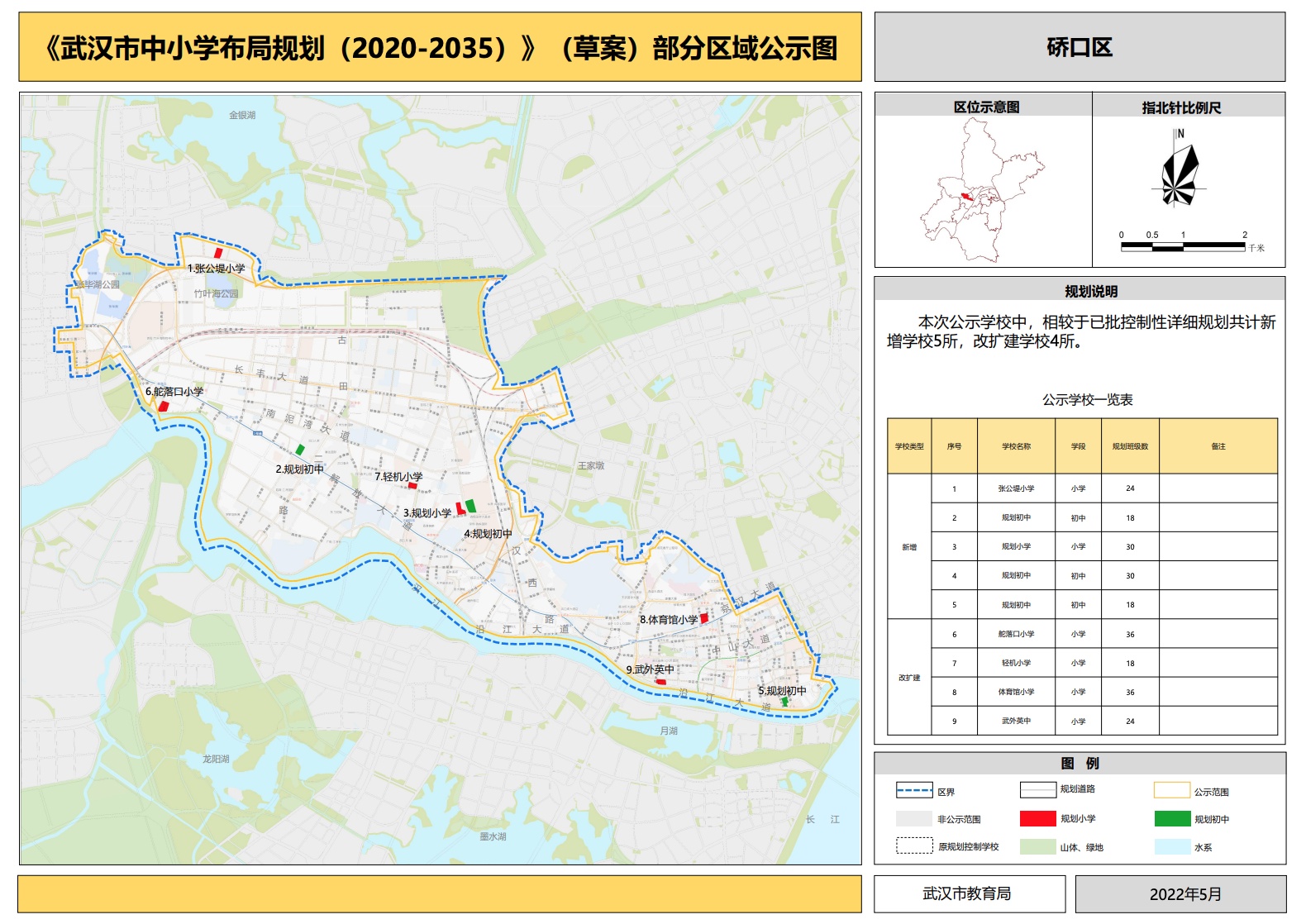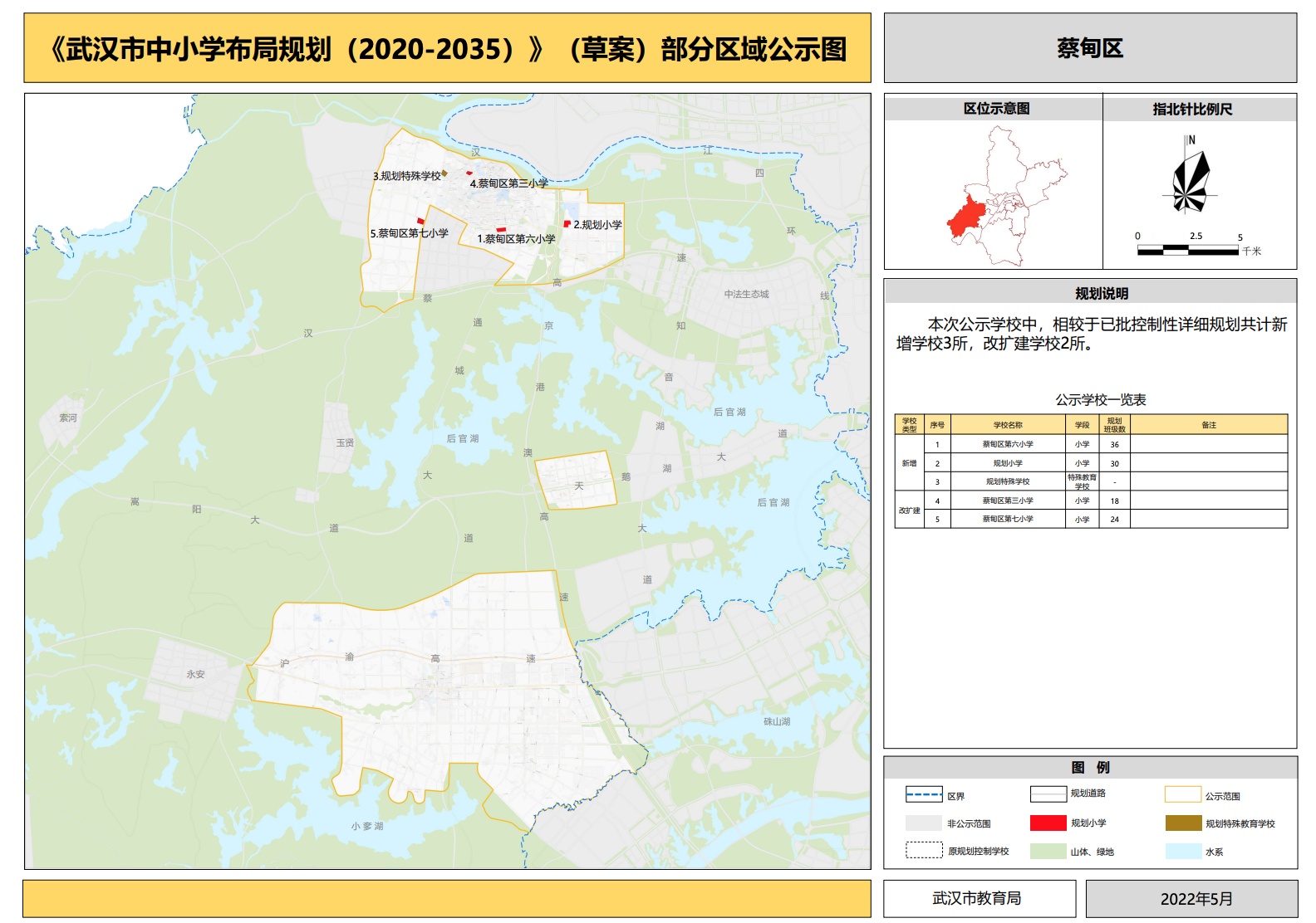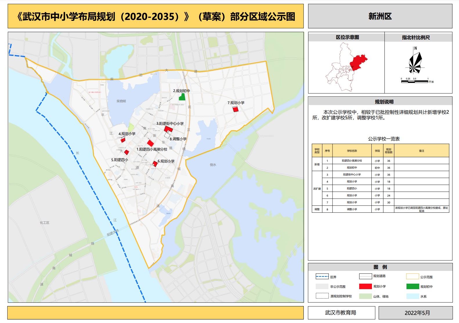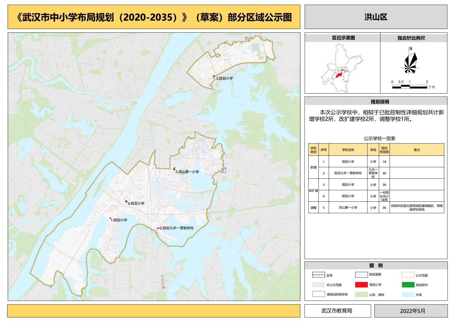 《武汉市中小学布局规划(2020—2035年)》(草案)结合了《武汉市国土空间总体规划(2021—2035年)》(草案)的相关要求,在原编制《武汉市普通中小学布局规划(2013—2020年)》基础上组织编制而成。本次批前公示范围为《武汉市中小学布局规划(2020—2035)》(草案)部分区域,其他区域由于相关规划正在调整,不纳入本次公示范围。