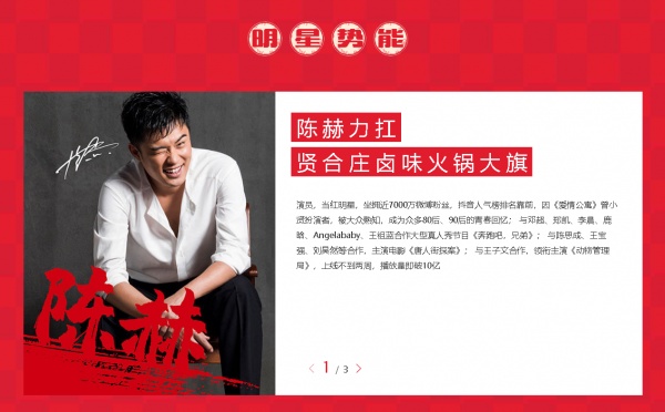 记者随后致电“贤合庄”官方客服电话,询问“陈赫退出原因”,客服人员表示:“我们不太清楚,详细情况请您关注官网或官方微信发布的权威信息。”记者搜索“贤合庄”官网可以看到,其首页显著位置仍有陈赫的照片及“陈赫领衔”等宣传信息,“关于我们”一栏也仍显示“陈赫扛起贤合庄卤味火锅大旗”。