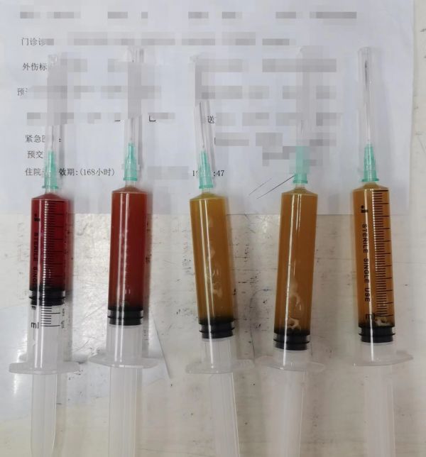 抽吸出来的关节积液。通讯员李亚楠 杨京 摄