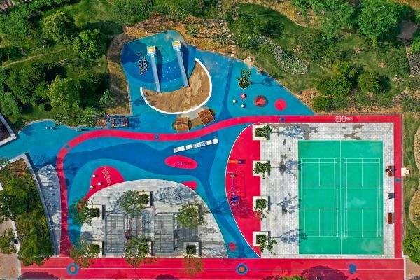 熙龙湾游园面积共2.1万平方米,相当于3个足球场大。从空中俯瞰,郁郁葱葱,形如一张大型绿毯。此前已建有公共厕所、休闲广场和散步绿道。“熙龙湾小区常住人口达4000余人,年轻居民多达七成,附近新建的融创观澜府小区也多为年轻住户,增加儿童游乐设施和体育锻炼器材势在必行。”游园改造项目负责人叶葳介绍,通过广泛走访、征求居民意见,熙龙湾游园升级改造重点打造儿童娱乐和成人锻炼的场地。
