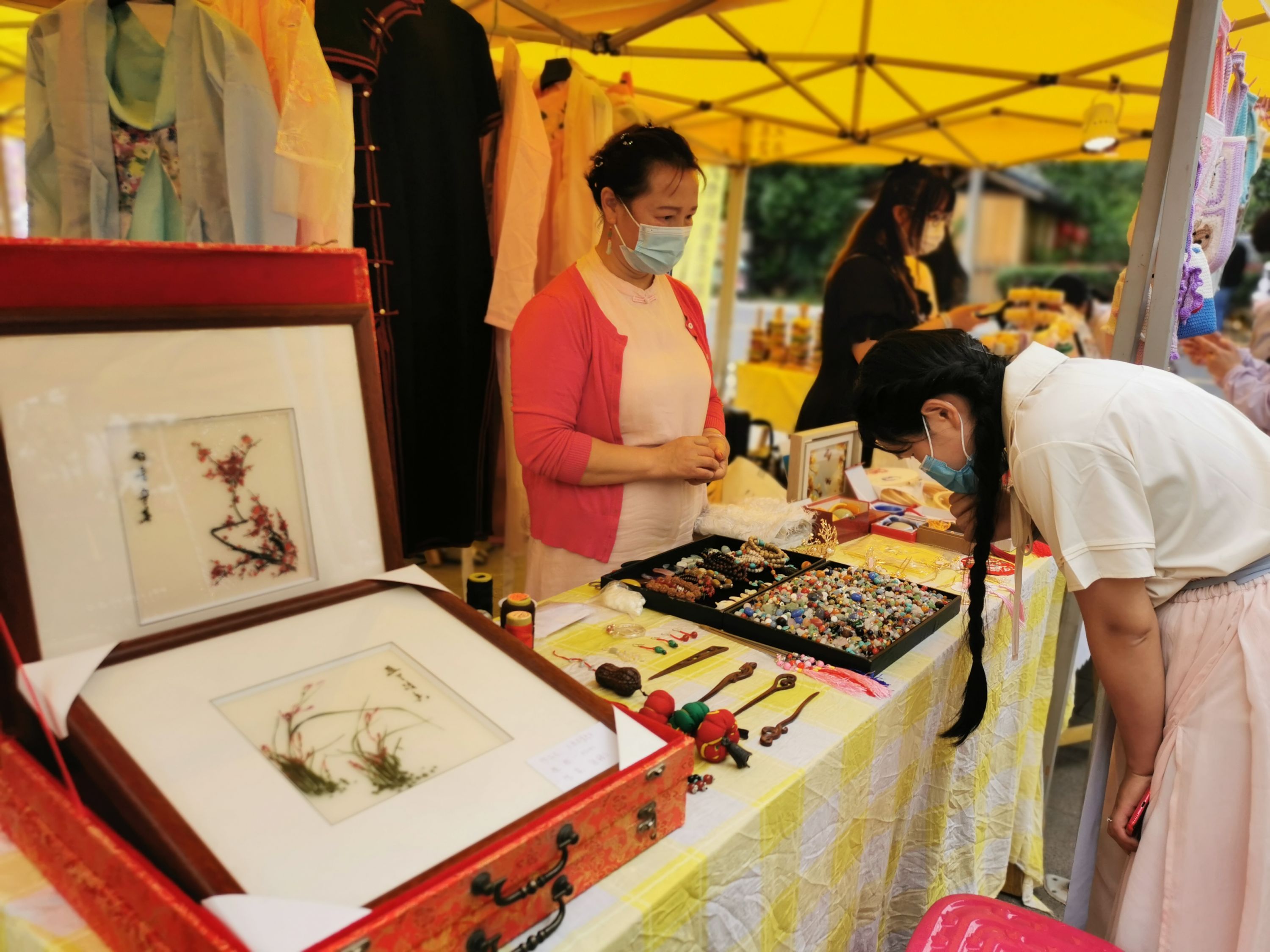 “我想通过一针一线把汉绣传承发展下去。”摊主张疆已接触汉绣11年,“这幅红梅图与东湖有着不解之缘,我曾多次去东湖梅园赏梅,揣摩构图寻找灵感。”张疆红告诉记者,这已是她第3次参加大李市集。