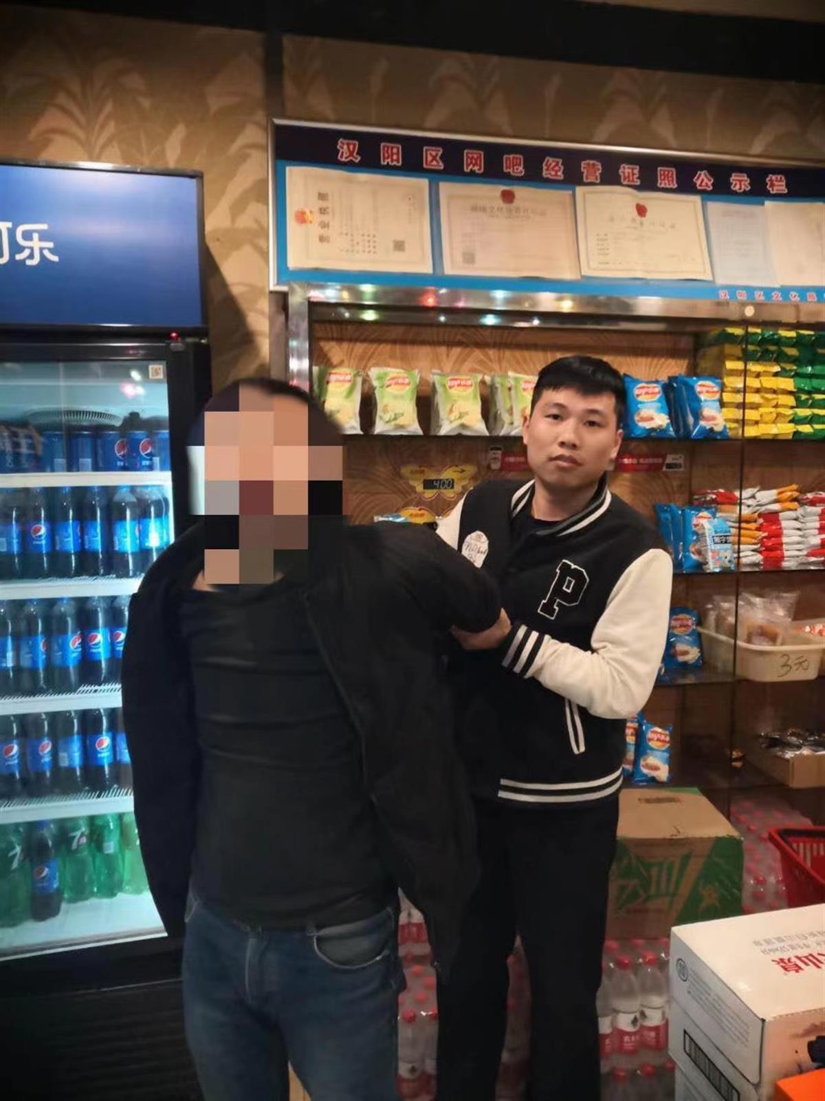 刘胜(右)抓住犯罪嫌疑人。 通讯员杨冰 摄