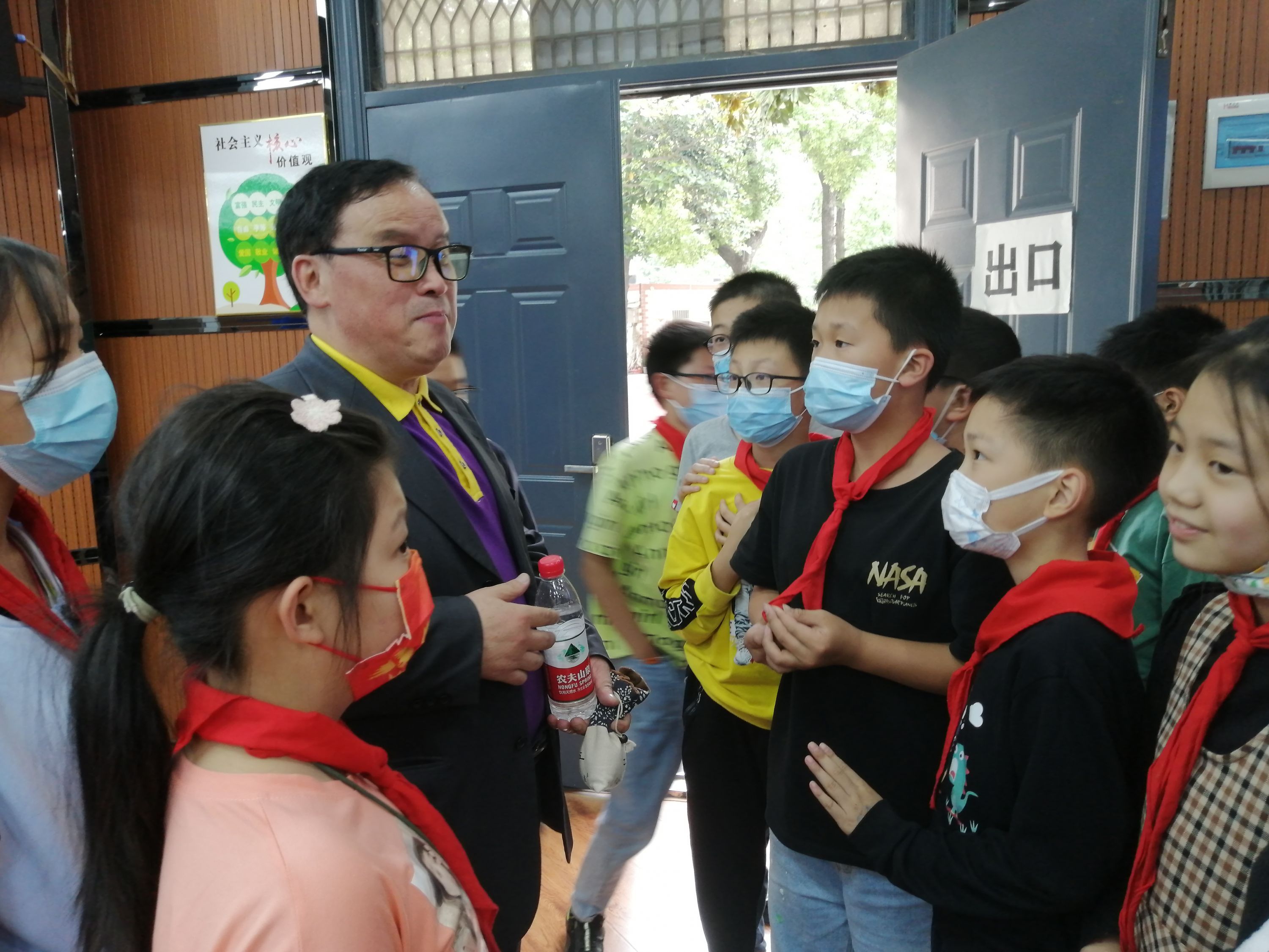 5月17日,徐世球教授在武汉市复兴路小学讲完课,被学生们“打围”。