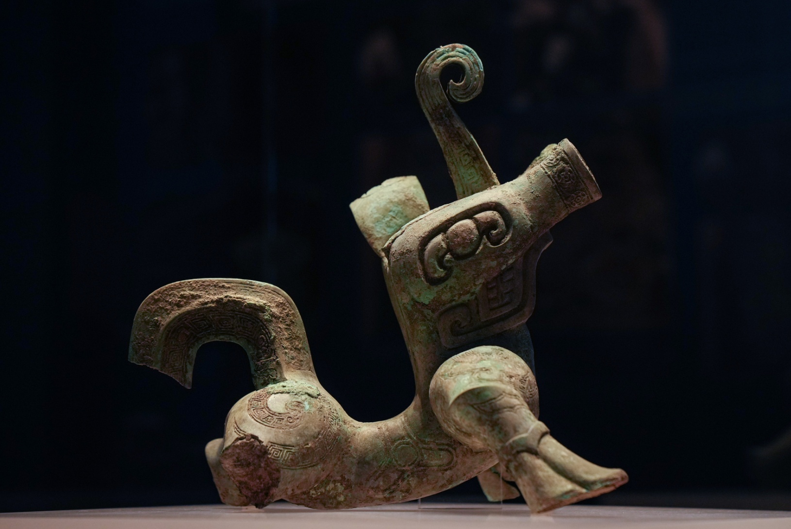 5月18日,“花开并蒂——巴蜀青铜文明特展”作为国际博物馆日川渝主会场重磅展览在宜宾市博物院展出,此前在三星堆遗址3号“祭祀坑”出土的一件形似“机器狗”的铜神兽首次面向公众展出。新华社记者江宏景 摄