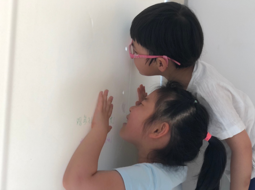 孩子们透过观鸟孔观察鸟儿一家。通讯员姜莹莹 摄